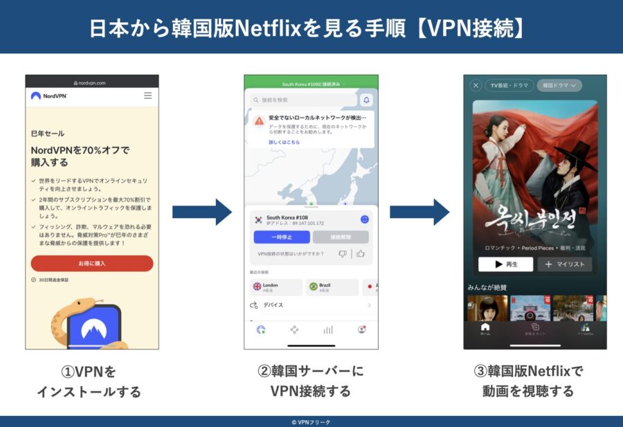 上記のように、VPN接続で海外サーバーにアクセスするだけで、日本版とは異なるライブラリを簡単に楽しめます。