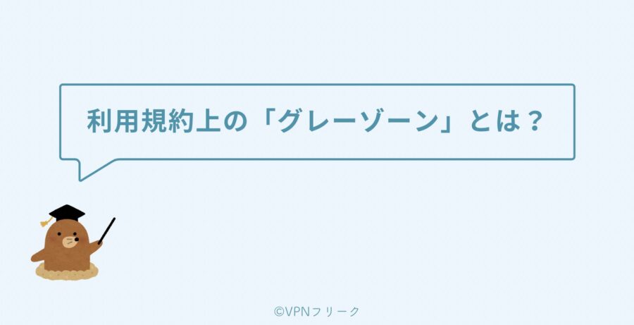 規約の内容によっては、VPNを使った特定の行為が推奨されていない、あるいは問題視される可能性があるため、「グレーゾーン」と言われています。