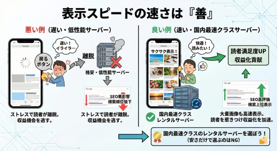 とにかく、レンタルサーバーにおいては「表示スピードが速い=善」です。
