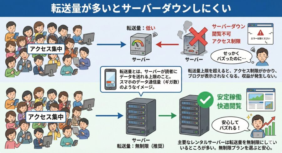 ブログにアクセスが集中した際、サーバーがダウンして閲覧できなくなる事態は避けなければなりません。