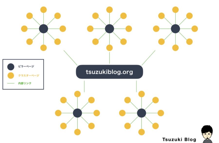 - クラスターページ同士も、関連性が高いもの同士をリンクで結ぶ
