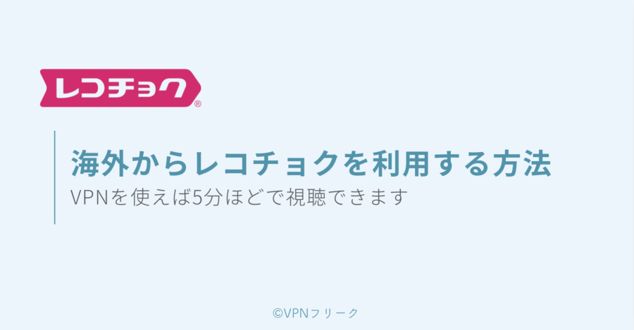 海外に来てるのですが、レコチョクを使おうと思ったらエラーが出て使えませんでした。どうすれば海外から使えますか? 結論、海外からレコチョクを使うには、VPNという...
