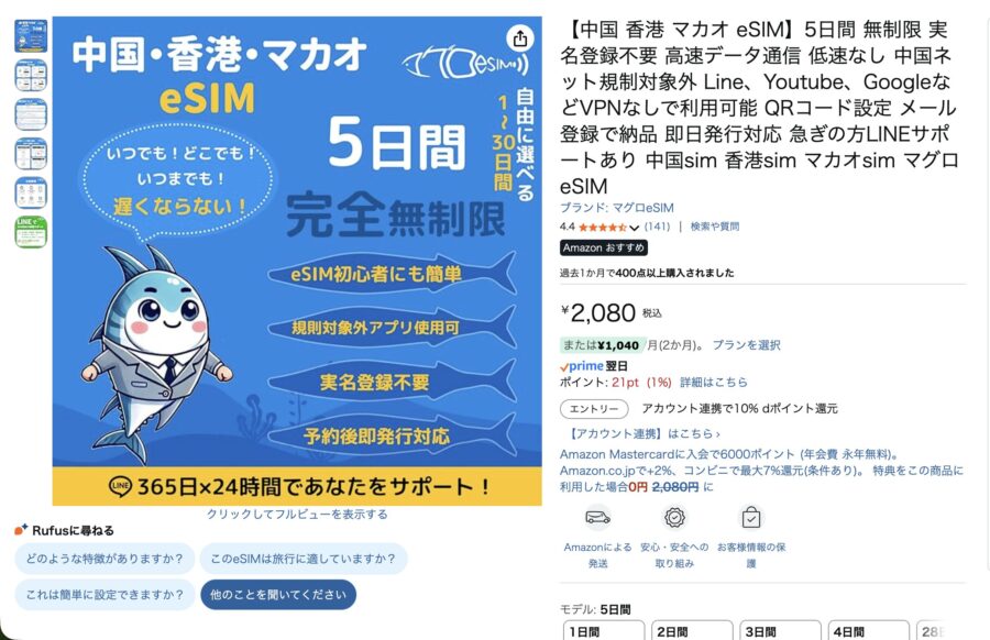 長期滞在や頻繁な中国渡航を予定している人には、コストパフォーマンスに優れた選択肢です。
