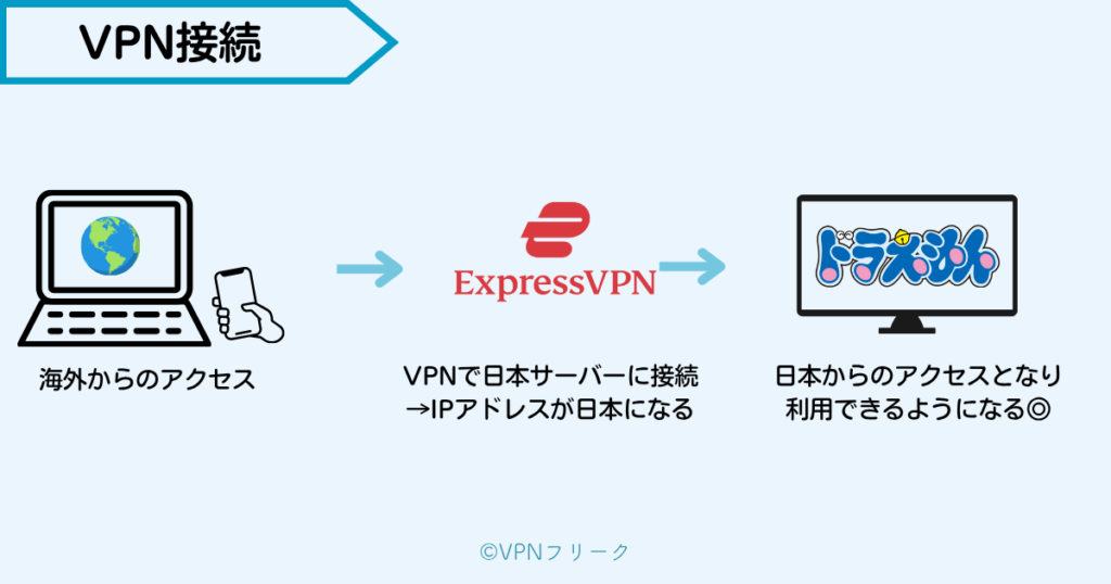 しかし、VPNを使えば、海外からでも簡単にドラえもんを視聴できます。