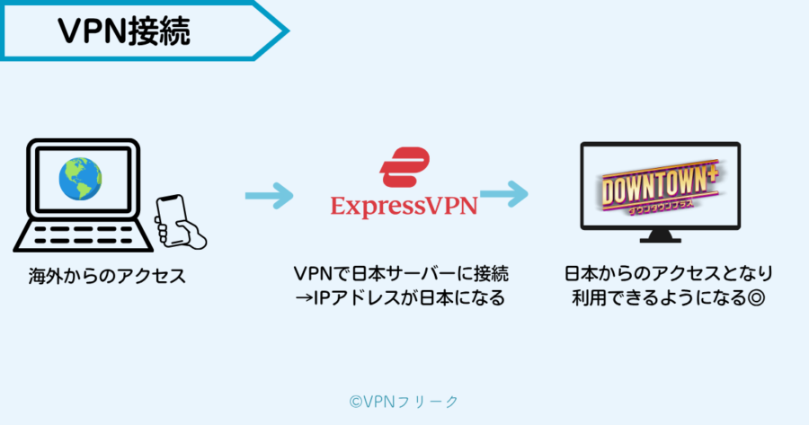 VPNを使えば、海外からDOWNTOWN+を見れる仕組み