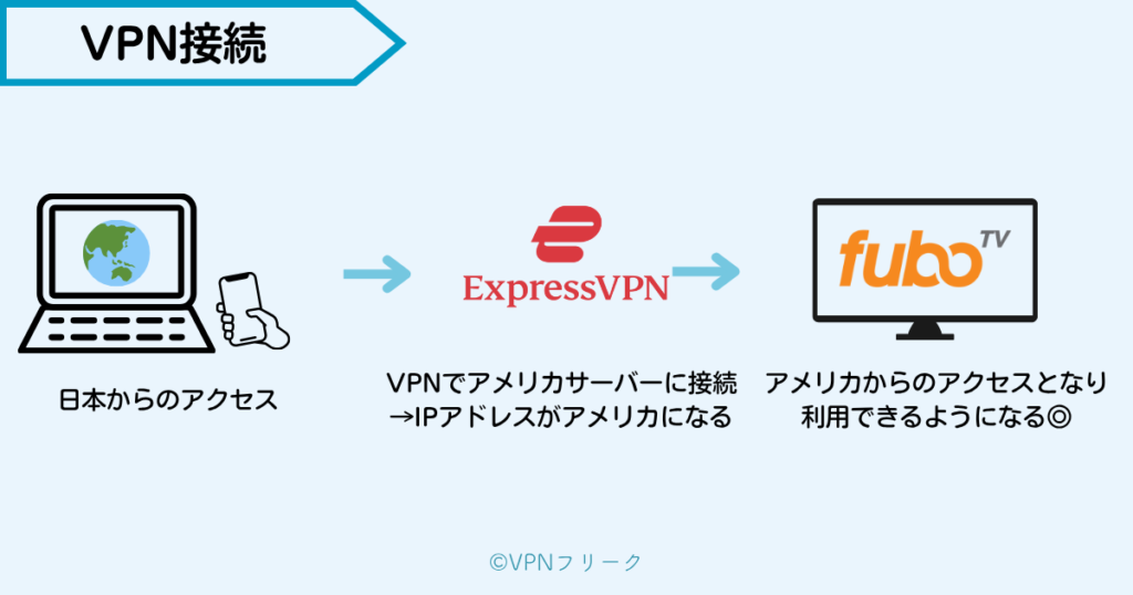結論、日本からFuboTVを見るには、VPNというツールが必要です。