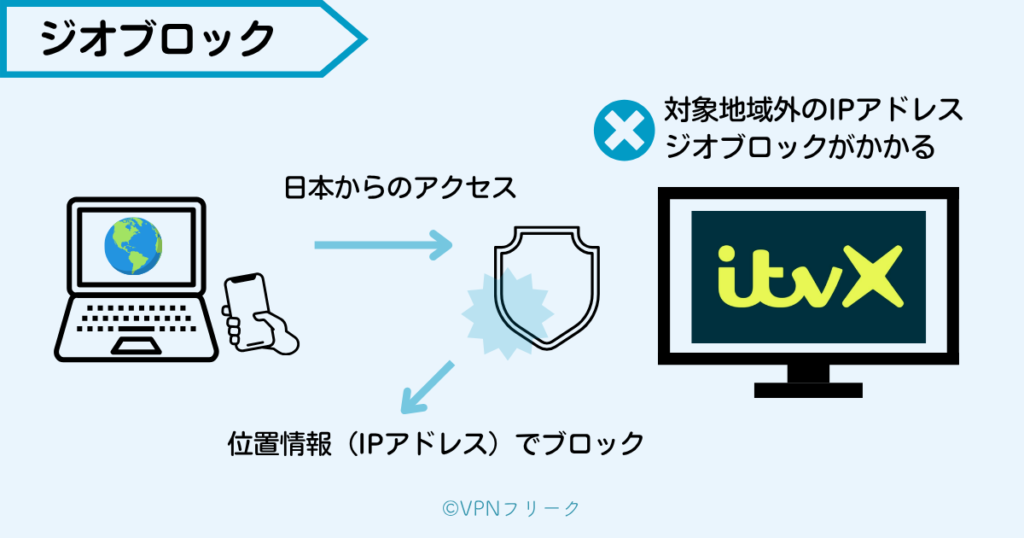 なぜなら、ITVXが「地域制限(ジオブロック)」という仕組みを導入しているからです。