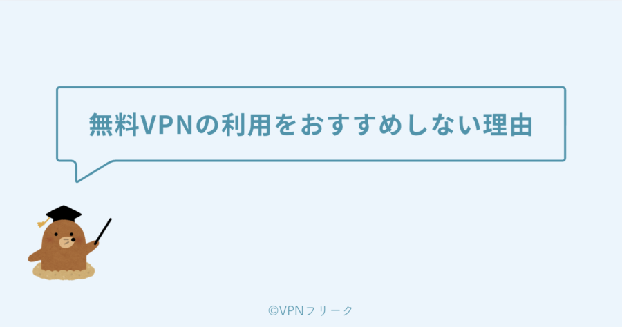 しかし、私は無料VPNの利用を強くおすすめしません。
