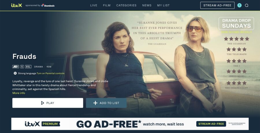もし広告なしでより快適に視聴したい場合は、月額制の有料プラン「ITVX Premium」にアップグレードする選択肢もあります。