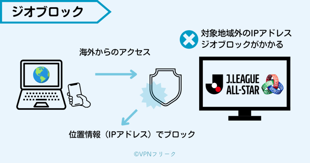 そのため、海外のIPアドレスからアクセスすると「ジオブロック(地域制限)」がかかり、動画を再生できません。