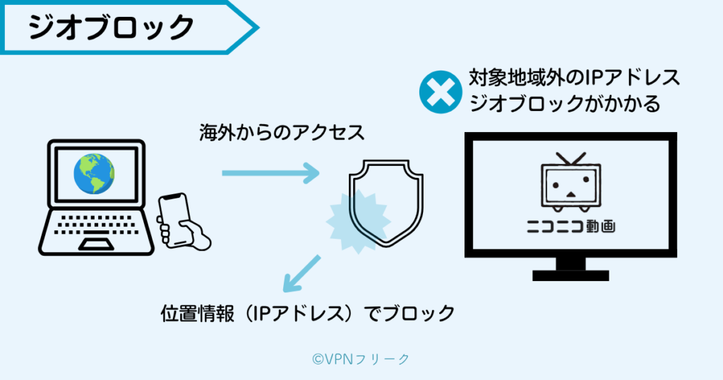 海外からニコニコ動画のアニメなどが見れないのは、IPアドレスによってアクセス元を判断する「ジオブロック」が原因です。