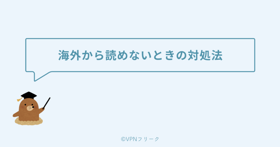 「ジオブロック(地域制限)」と呼ばれる仕組みで、出版社との著作権・配信権の取り決めにより、日本国外への配信が制限されているのです。