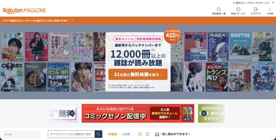 ブラウザ版なら楽天マガジン公式サイトからアクセスできます。