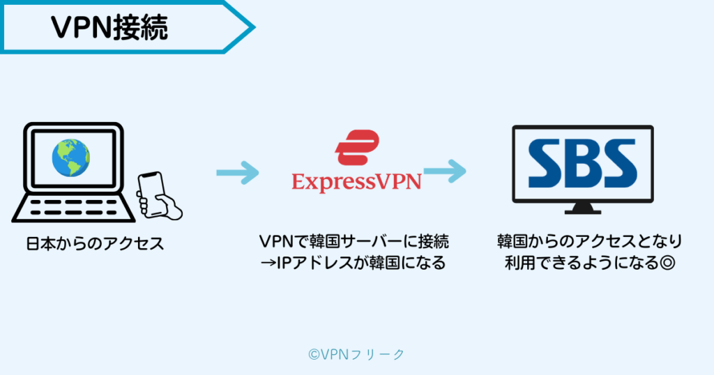 - VPNなし:日本のIPアドレス → 韓国の配信サービスにブロックされる