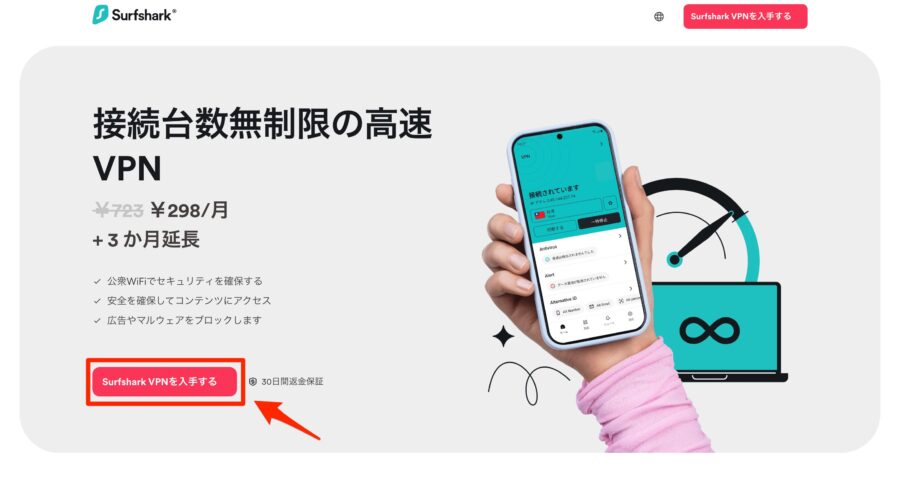 30日間の返金保証もあるので、まずはこの記事でSurfsharkの全体像を掴みましょう。