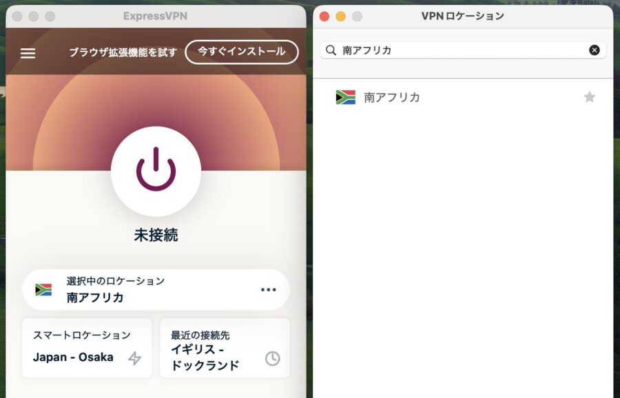 安定した視聴のためには、常にVPN接続を維持してください。通信速度が遅い場合は、別の南アフリカサーバーに切り替えると改善することがあります。