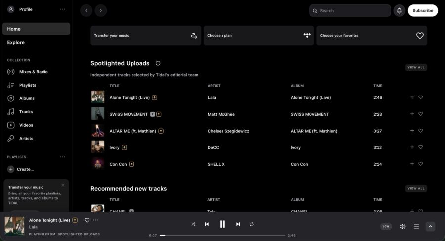 TIDALは、日本未上陸の音楽ストリーミングサービスで、有料プランに登録すると、ロスレスの最高音質で音楽を楽しめます。