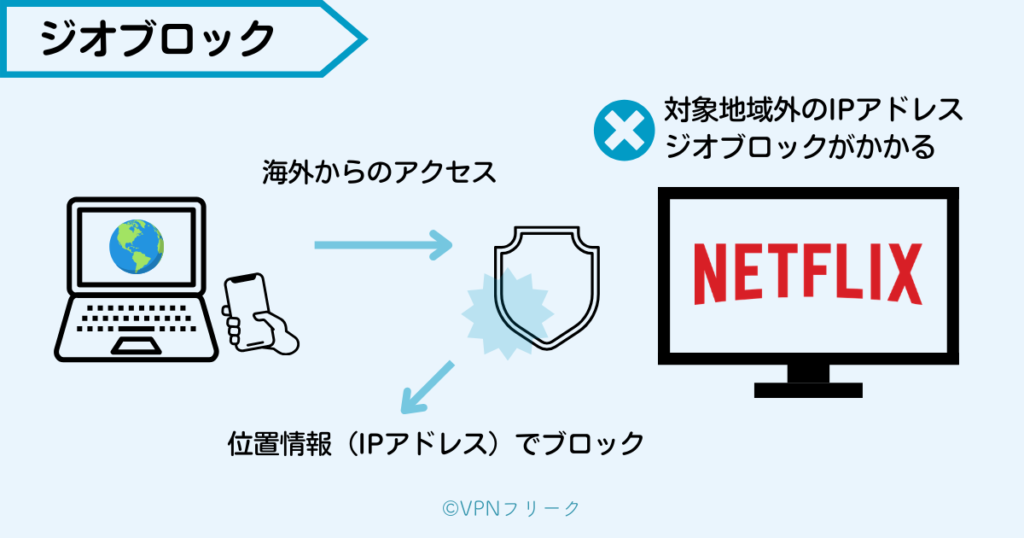 しかし、海外から日本版Netflixにアクセスすると、ジオブロック(地域制限)がかかって視聴できません。