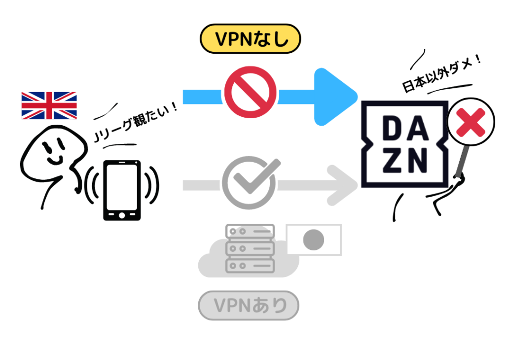 DAZNは海外IPアドレスをブロックしているため、そのままでは海外から視聴できません。